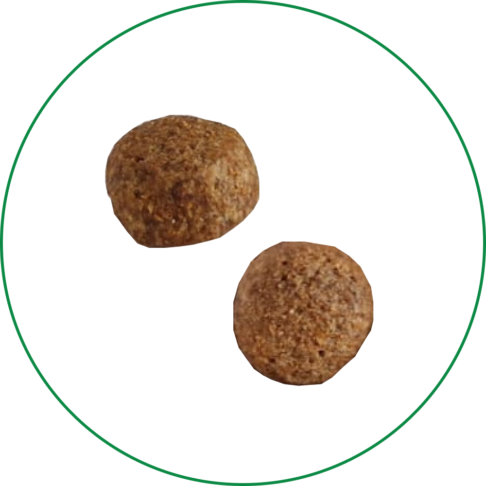 Дегидрированное мясо (индейка, говядина) рис, пшеница, птичий жир, гидролизованные белки, дрожжи, витаминно-минеральный комплекс для собак, (а, d3, e, в1, в2, в3, в5, в6, в7, в9, в12, железо, медь, цинк, марганец, йод, селен) жом свекловичный, семя льна, витамин в4, dl – метионин, соль, морковь, юкка шидигера, пребиотики, антиоксидант